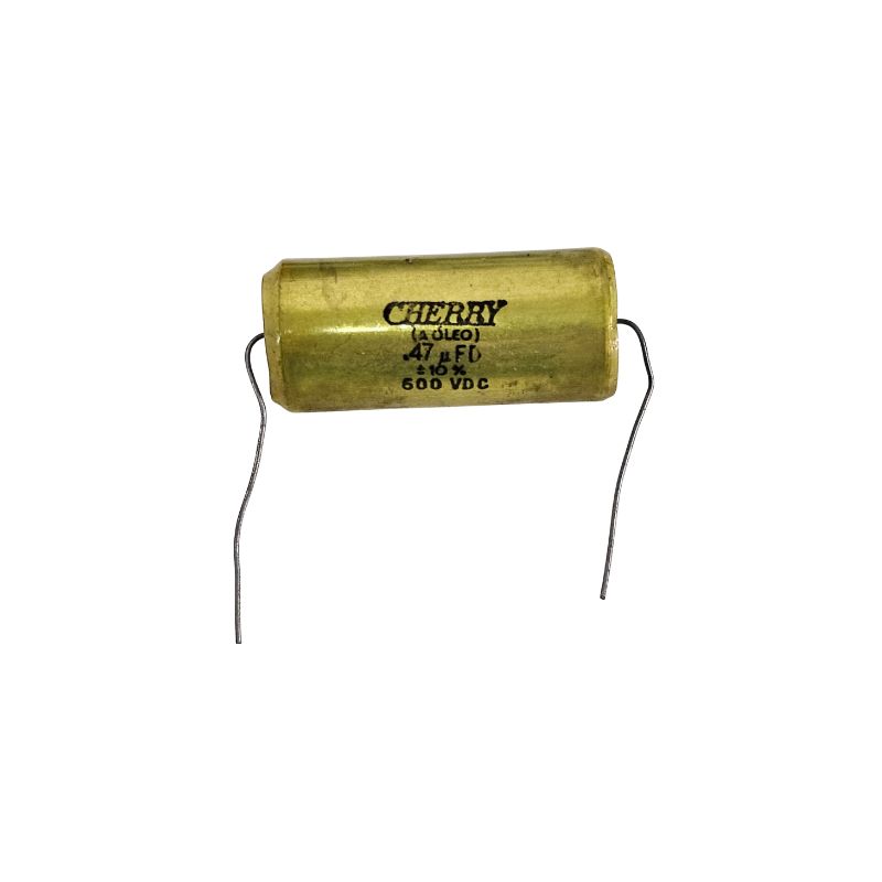 Cherry: Este é o fabricante ou marca do capacitor. Os capacitores de óleo da marca Cherry são considerados vintage "New Old Stock" (NOS) e são procurados nas comunidades de eletrônicos vintage e audiófilos.