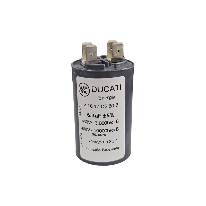 Capacitor de Partida 6,3uF x 440V 50/60Hz Plastico Faston Ducati 4.16.17.C2.60.B