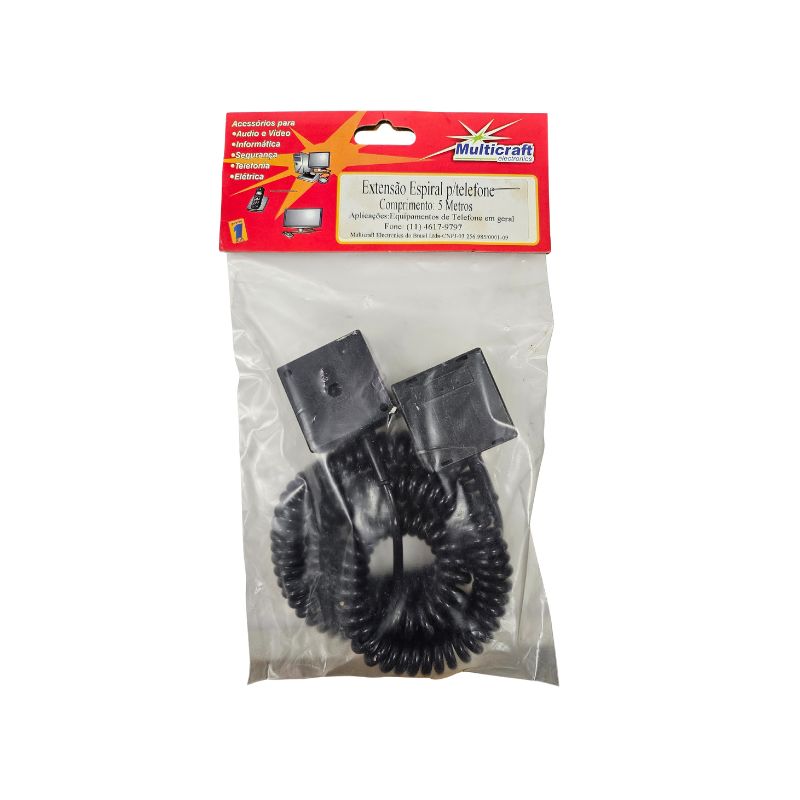 A Extensão Espiral Para Telefone 5M Multicraft é um cabo projetado especificamente para uso em telefonia fixa.