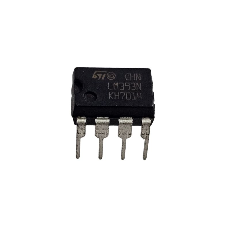 O LM393N da STMicroelectronics é um Circuito Integrado (CI) de Comparador Duplo de Baixa Potência (Low Power Dual Voltage Comparator).