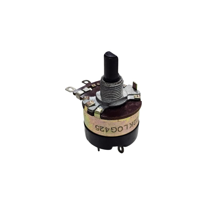 Log: A sigla "Log" (ou "A", dependendo do fabricante) indica que este potenciômetro tem uma curva de variação de resistência logarítmica. Isso significa que a resistência não varia de forma proporcional ao movimento do eixo. Em vez disso, a variação acontece em uma curva logarítmica para se adequar à forma como o ouvido humano percebe o volume do som. Por isso, ele é ideal para controles de volume em amplificadores e rádios, proporcionando um ajuste de áudio mais suave e intuitivo.