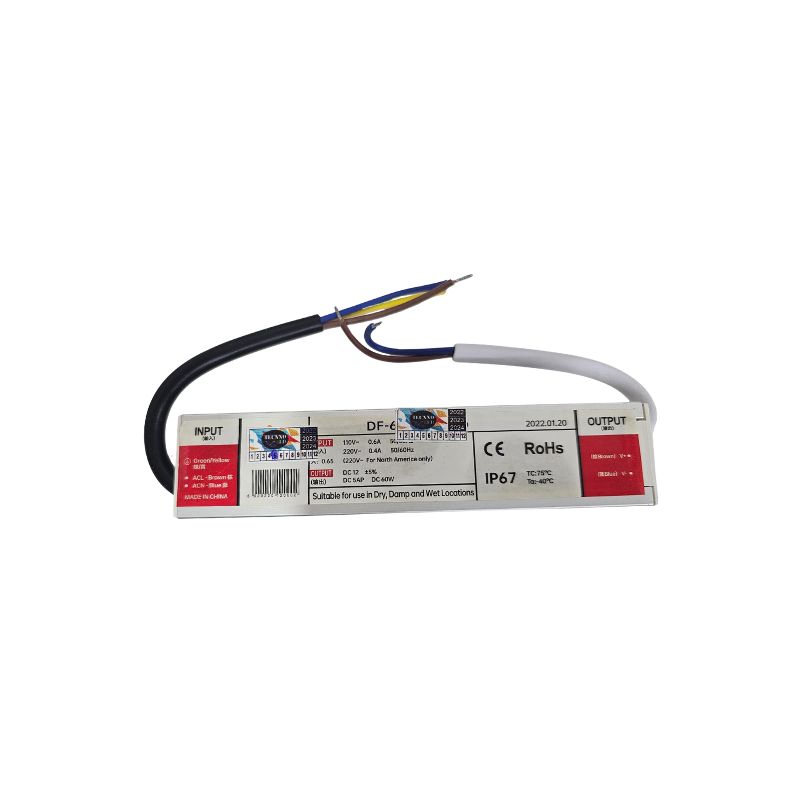 É uma fonte de alimentação com um código de modelo (DF-60-12) e um grau de proteção (IP67) que a torna um produto específico para uso profissional ou externo.