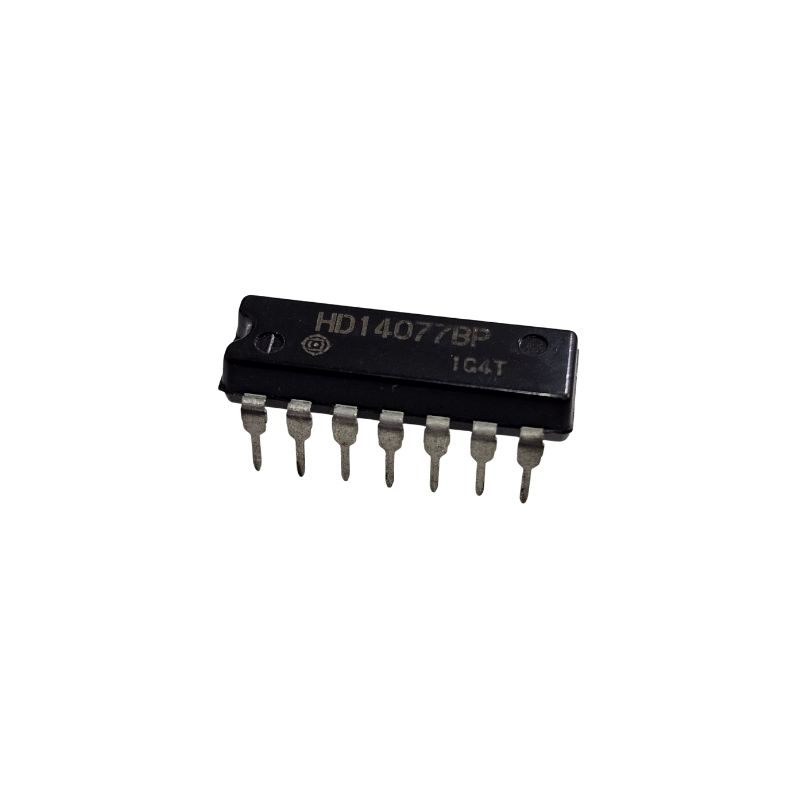 O HD14077BD da Hitachi é um circuito integrado CMOS do tipo contador divisor, desenvolvido para aplicações que exigem contagem precisa de pulsos, temporização e divisão de frequência.