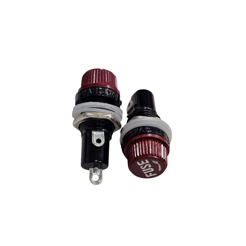 Este modelo possui tampa vermelha, que facilita a identificação visual do compartimento do fusível e oferece acesso rápido para substituição, sem necessidade de desmontar o equipamento. O sistema de fixação por porca traseira permite instalação firme e segura em superfícies metálicas ou plásticas.
