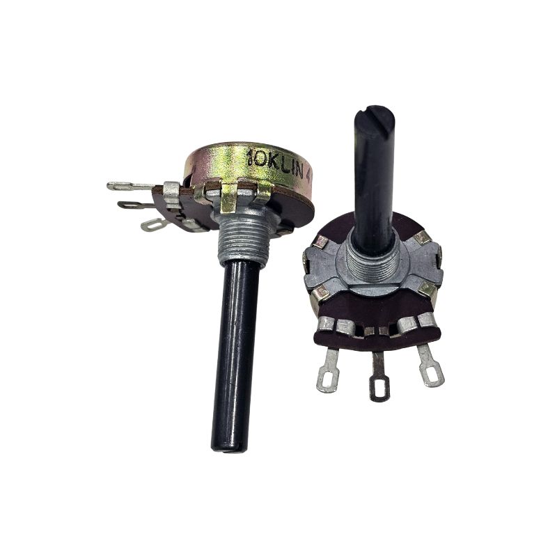 Tipo de Variação: Linear (B). Isso significa que a variação da resistência é diretamente proporcional ao ângulo de rotação do eixo. Por exemplo, ao girar o eixo até a metade do seu curso, a resistência será de aproximadamente 5.000 ohms. Esse tipo de resposta é crucial para controles que precisam de uma relação direta entre a posição do controle e o efeito no circuito.