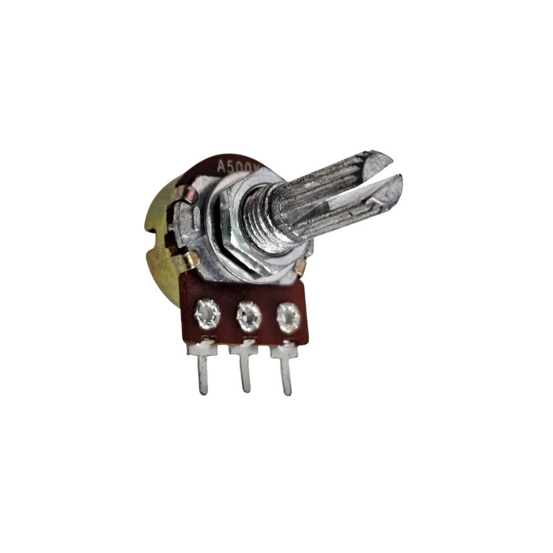 O potenciômetro 500K A L20 é um componente eletrônico variável utilizado para controle de nível, ajuste de ganho, volume, brilho ou calibração em diversos circuitos eletrônicos. Possui resistência nominal de 500 kΩ, curva A (logarítmica), ideal para aplicações em áudio, e 3 terminais para conexão padrão em placas ou montagens com fios.