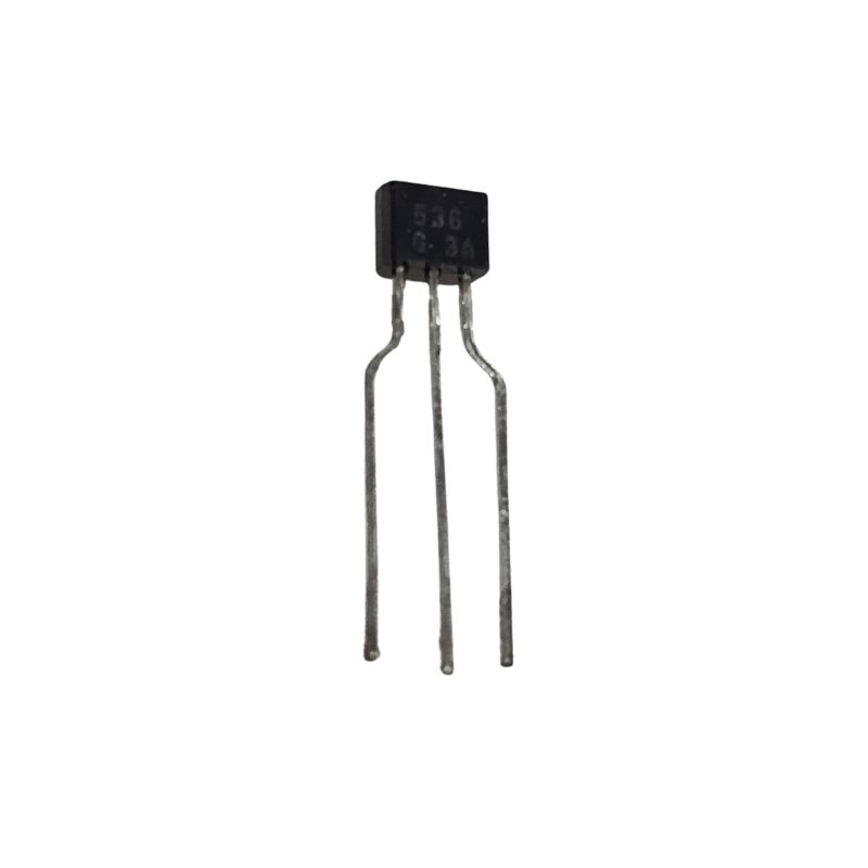 O BC536G é tipicamente um transistor de silício com encapsulamento TO-92 (o formato pequeno e cilíndrico de 3 pinos, comumente usado em montagem PTH - Through Hole).